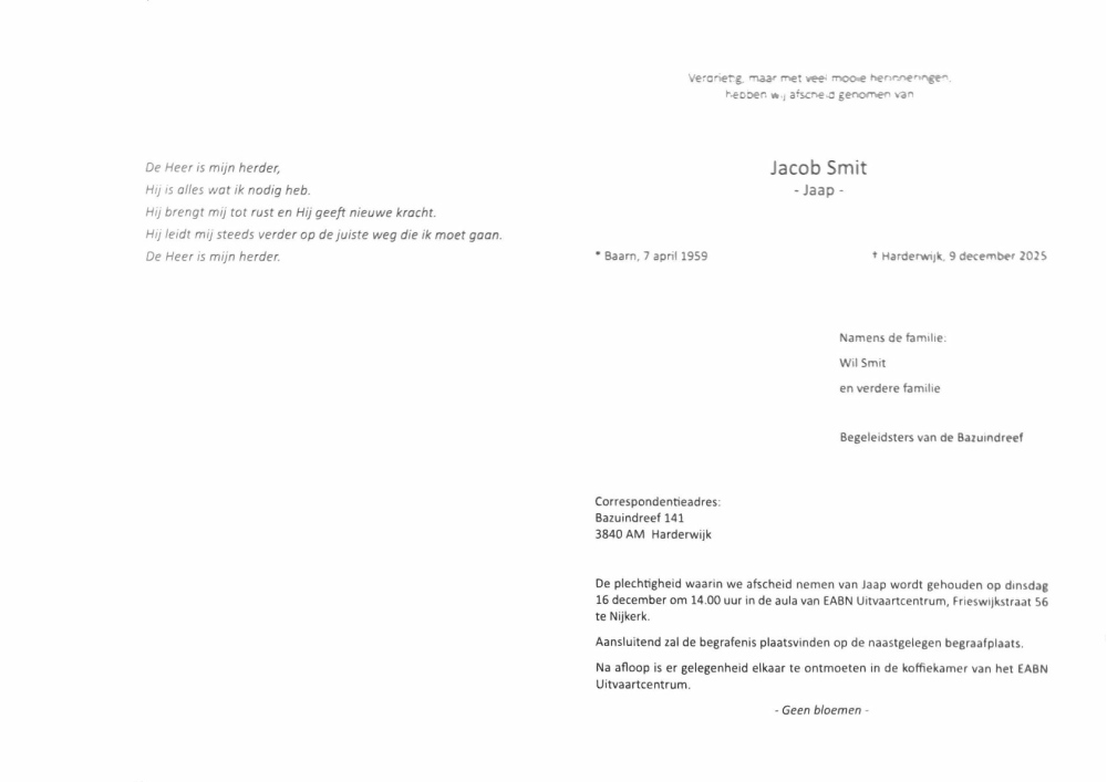 * Baarn, 07- ... In de leeftijd van 66 jaar | |||||